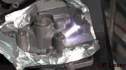 Figure 4: Pulsed laser cleaning of cast aluminum-silicone alloy. The picture has been taken from Youtube.