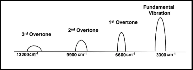 Figure 1: The first and second overtone, fall in the near IR region (1515 nm and 1010 nm), whereas the third overtone falls in the deep red region (757 nm).