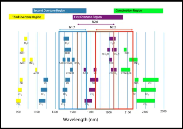 Figure 2: Bonds and the corresponding wavelengths associated with near IR spectra