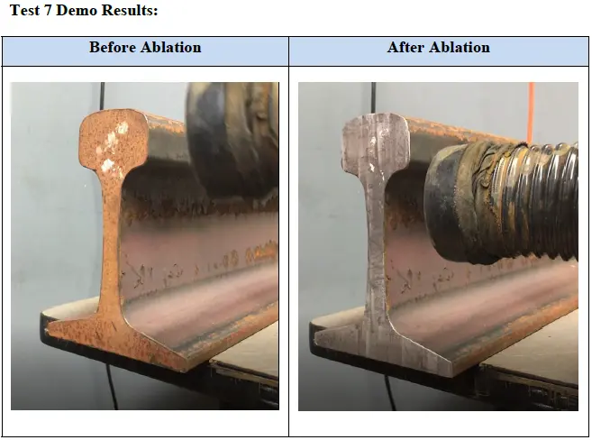 Rapport de test de nettoyage au laser professionnel Allied Scientific pour l'élimination de la rouille des voies ferroviaires