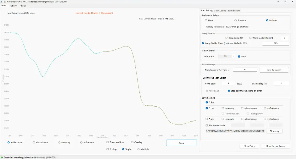 Le NIRvascan peut également être utilisé sur PC via un câble micro USB. Vous pouvez effectuer des mesures, créer vos propres références et bien plus encore. Le logiciel PC offre des fonctionnalités plus étendues que l'application elle-même et est fourni gratuitement avec le spectromètre.